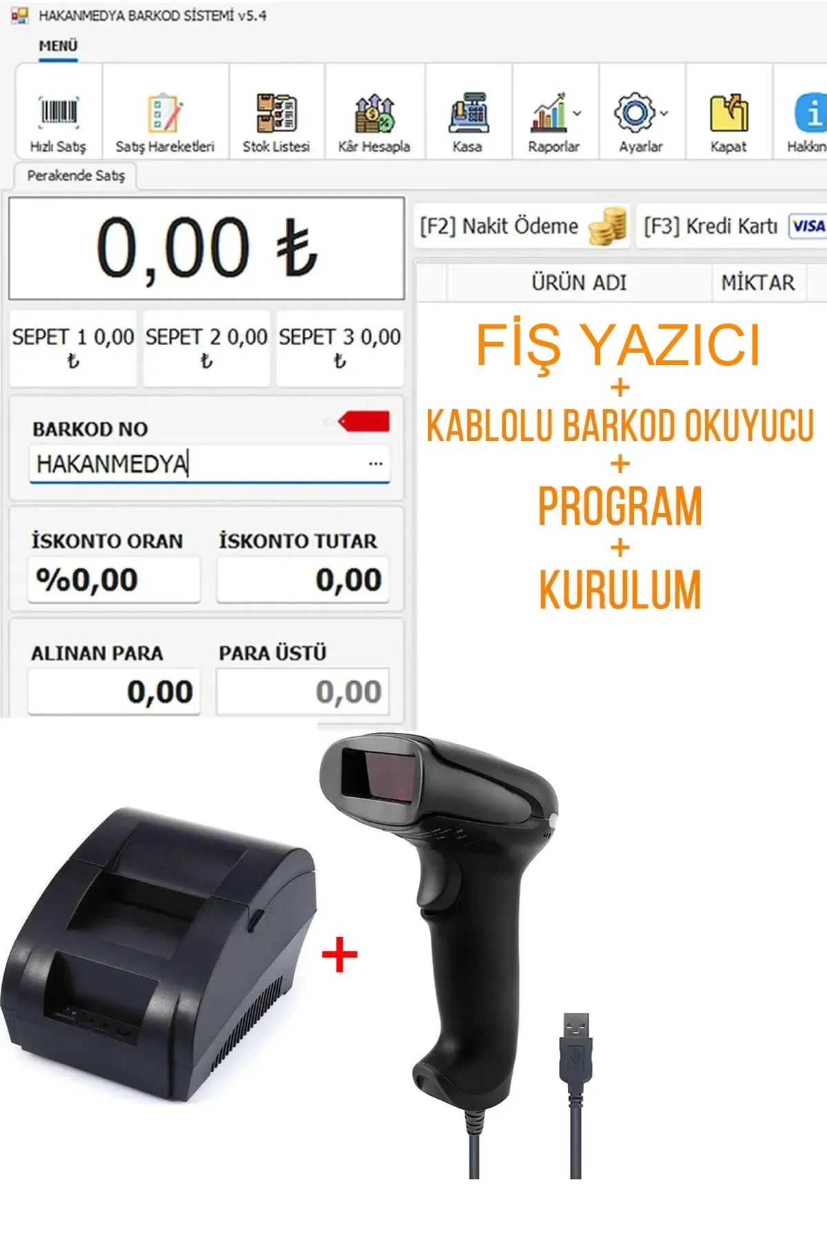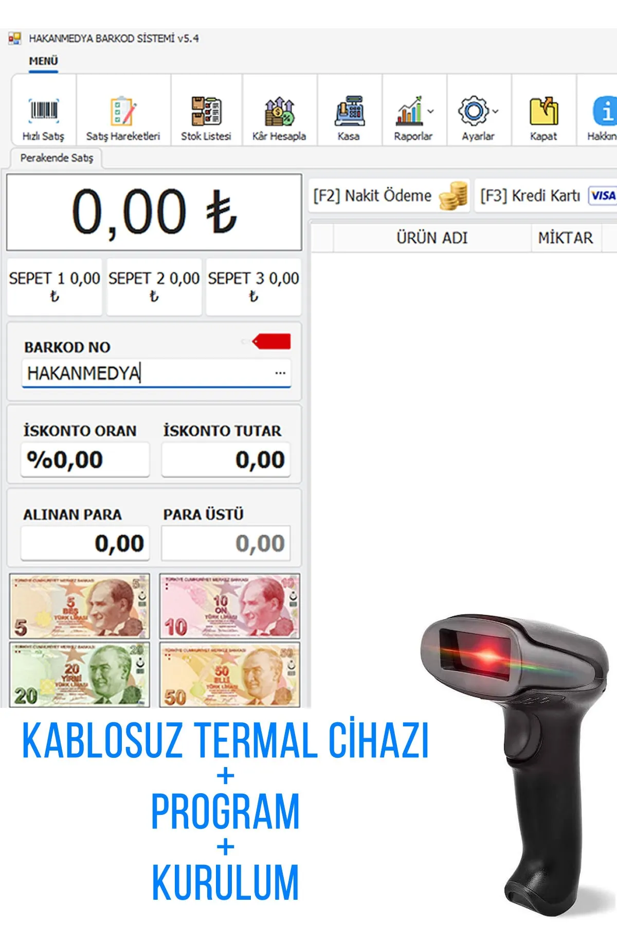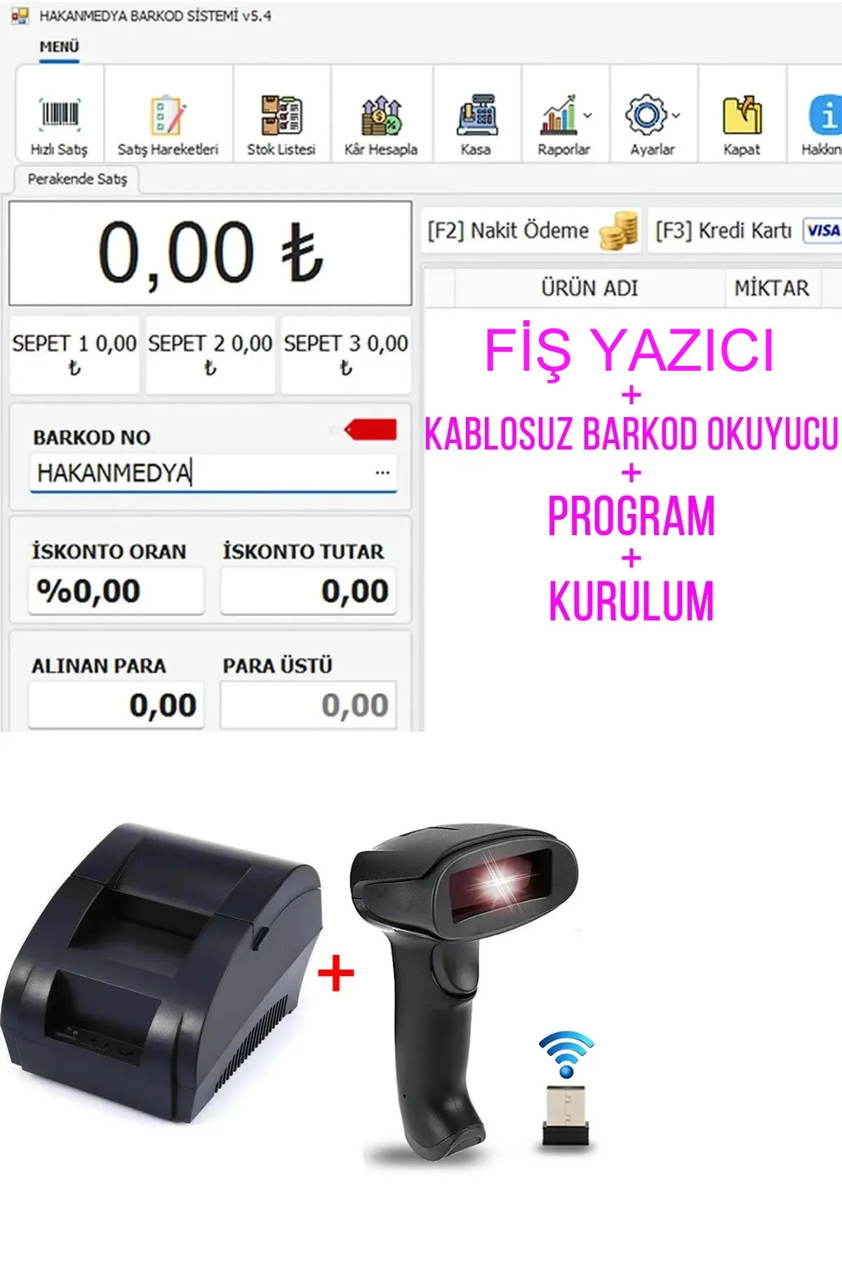 Barkod Programı Fiş Yazıcı Ve Kablosuz Barkod Okuyucu Hepsi Bir Paket